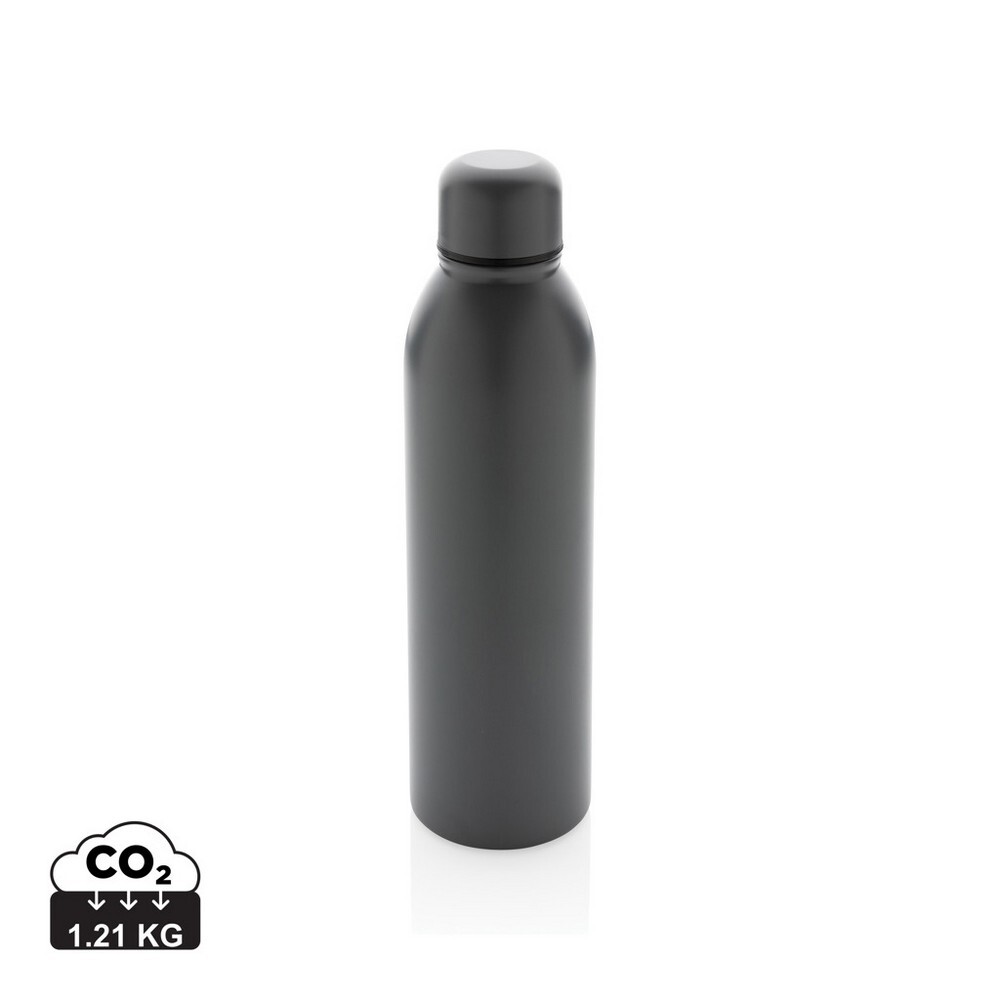 Butelka sportowa 500 ml, podwójne ścianki z próżnią pomiędzy, utrzymuje temperaturę napojów ciepłych do 5 godzin oraz zimnych do 15 godzin, wykonana ze stali nierdzewnej z recyklingu z certyfikatem RSC (Recycled Claim Standard) który gwarantuje, że wykorzystane materiały pochodzą z recyklingu, całkowita zawartość materiału z recyklingu obliczona w oparciu o wagę całkowitą przedmiotu: 90%, w pudełku z papieru kraftowego z certyfikatem FSC® (Forest Stewardship Council), pasuje do większości uchwytów samochodowych, nie zawiera BPA