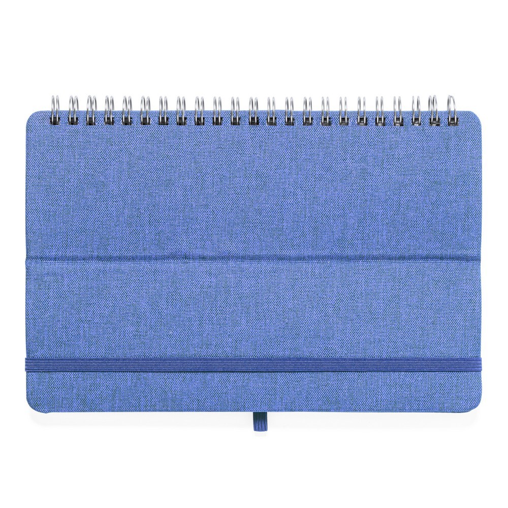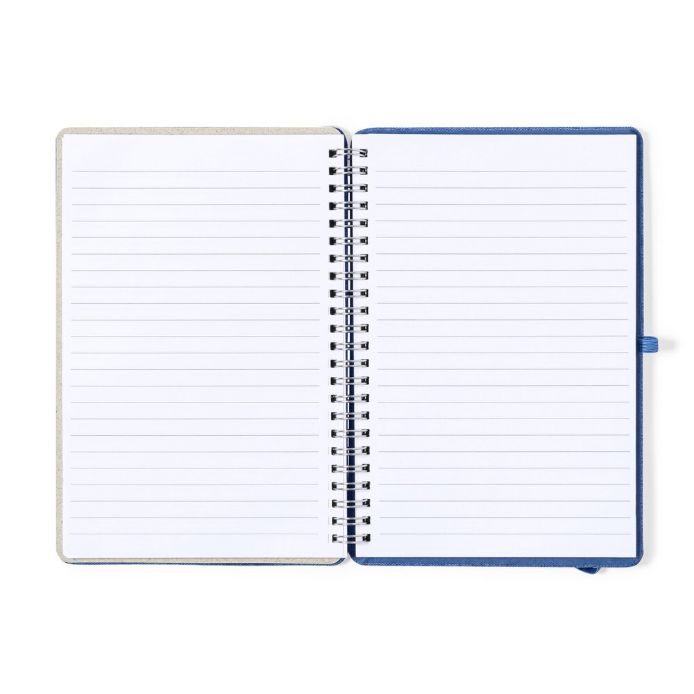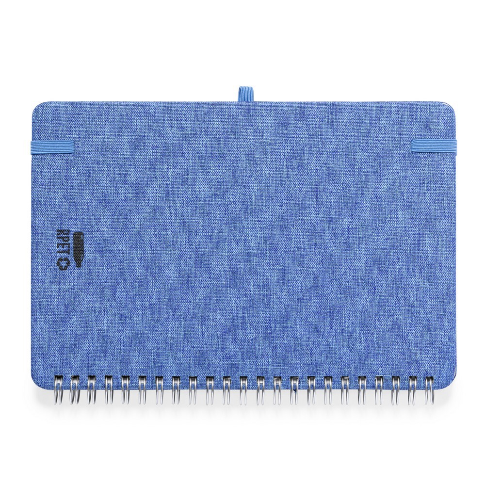 Notatnik RPET (ok. A5, 70 kartek w linie), stojak na telefon, stojak na tablet, twarda okładka, spiralne bindowanie, elastyczna opaska do zamykania
