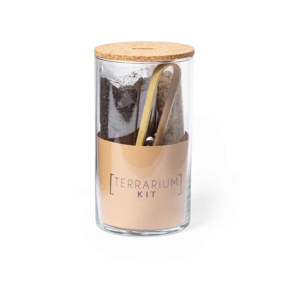 Szklane terrarium, w komplecie: nasiona kaktusa, podłoże i bambusowe szczypce, korkowe wieczko (wyprodukowane w Europie / made in Europe)