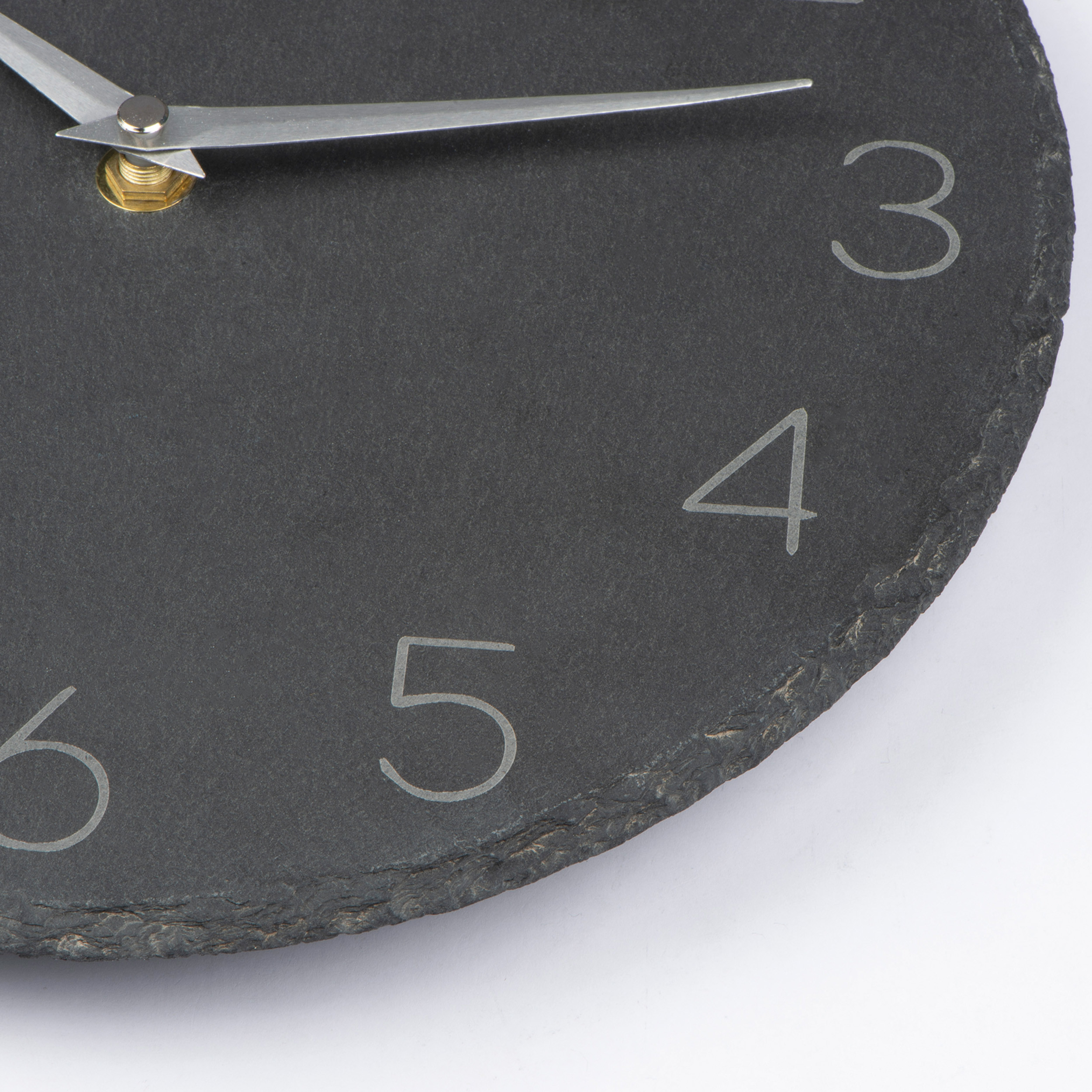 Zegar ścienny GRAZ to elegancki i niebanalny dodatek do każdego wnętrza. Wykonany z naturalnego łupka, prezentuje się wyjątkowo stylowo i nowocześnie, łącząc surowy charakter kamienia z delikatnością srebrnych wskazówek. Naturalna faktura kamienia sprawia, że każdy egzemplarz ma unikalny wygląd. Minimalistyczna forma oraz stonowana kolorystyka sprawiają, że zegar doskonale wpisuje się zarówno w nowoczesne, jak i bardziej klasyczne aranżacje. To nie tylko praktyczny element wyposażenia, ale również dekoracyjny akcent, który z pewnością przyciągnie uwagę i podkreśli charakter pomieszczenia. Świetnie sprawdzi się w salonie, biurze czy przestrzeni wspólnej.