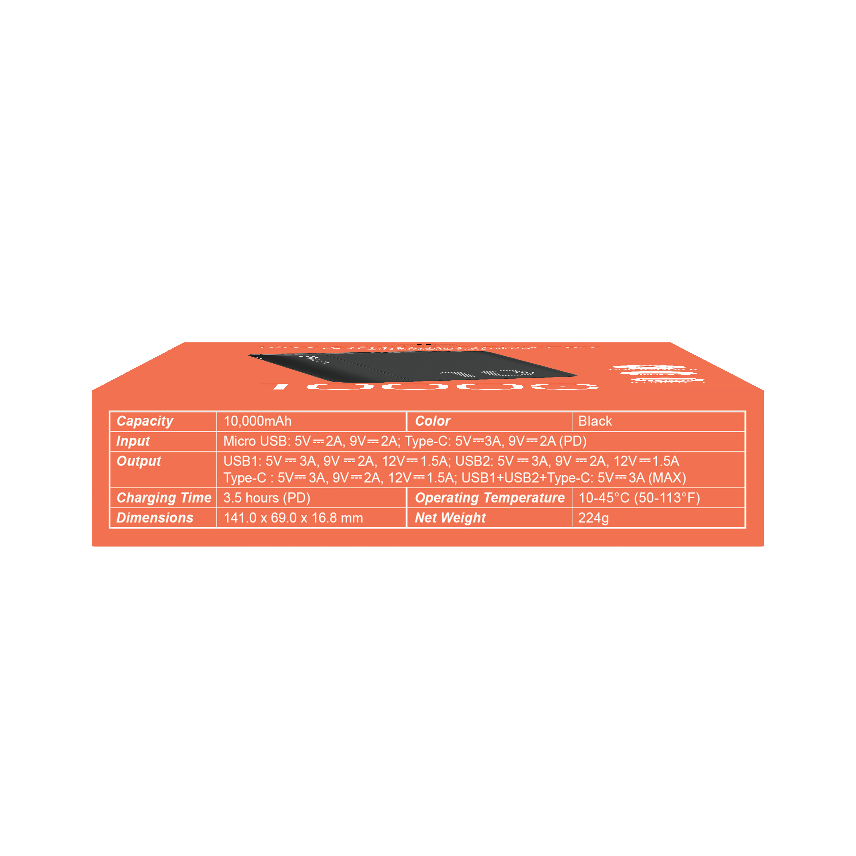 Powerbank został wyposażony w wysokiej jakości ogniwa o pojemności 10 000 mAh, co pozwala na pełne naładowanie przeciętnego smartfona od 2 do nawet 4 razy, w zależności od modelu i pojemności jego baterii. Taka pojemność zapewnia niezależność energetyczną przez wiele godzin, a nawet dni - niezależnie od tego, czy jesteś w podróży służbowej, na uczelni, czy na biwaku z dala od...
