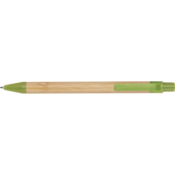 Długopis bambusowy z kolorowymi elementami to połączenie naturalnego materiału z nowoczesnym designem. Wykonany z drewna bambusowego i wzbogacony o kolorowe detale z włókna pszenicznego, stanowi ekologiczny wybór, który wyróżnia się na tle tradycyjnych długopisów.Posiada klikany mechanizm, a wkład piszący na niebiesko zapewnia wygodę użytkowania. Dzięki swojej solidnej konstrukcji i unikalnemu wyglądowi, długopis doskonale sprawdzi się zarówno w biurze, jak i w codziennym użytkowaniu, łącząc funkcjonalność z dbałością o środowisko.