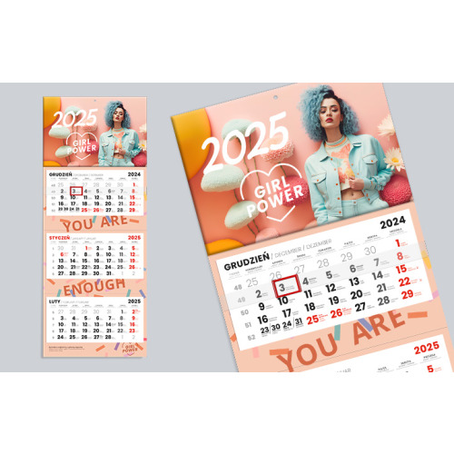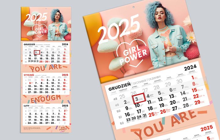 W przygotowanych kalendariach znajdują się: święta oraz dni okolicznościowe, imieniny, podział na tygodnie, a także zaznaczone niedziele handlowe.