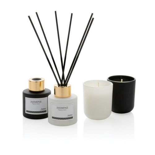 Zestaw upominkowy, jaśminowe patyczki zapachowe, jaśminowa świeczka zapachowa (długość palenia ok. 10h), w pudełku z papieru kraftowego