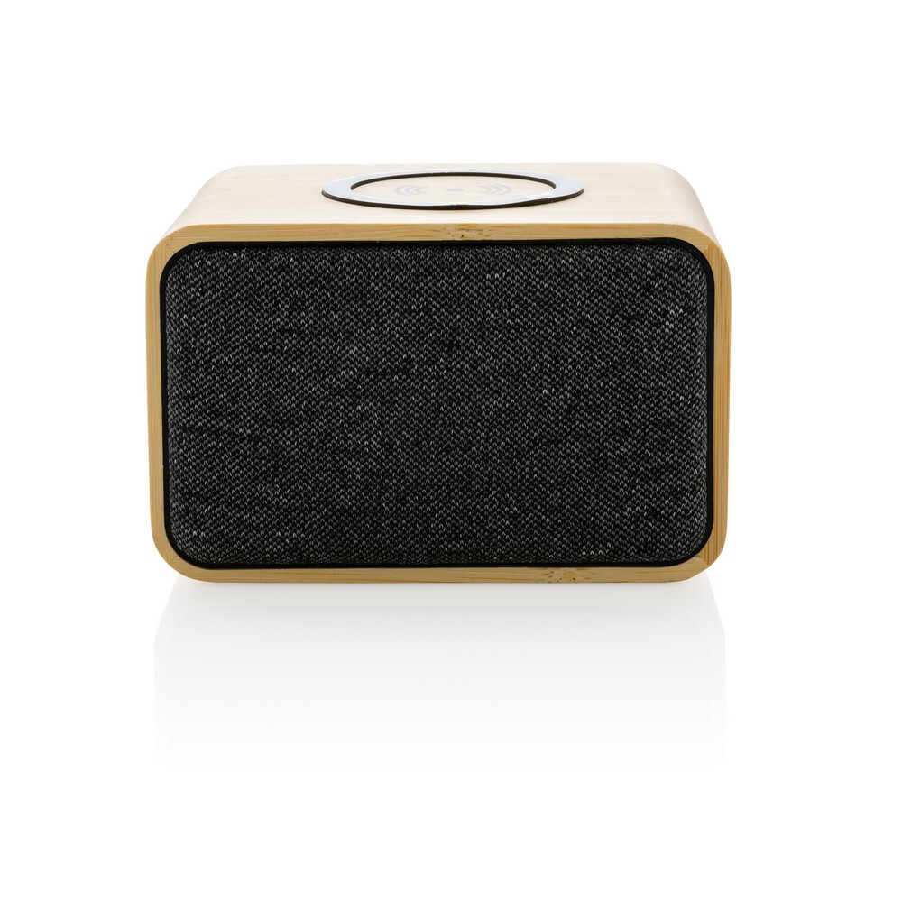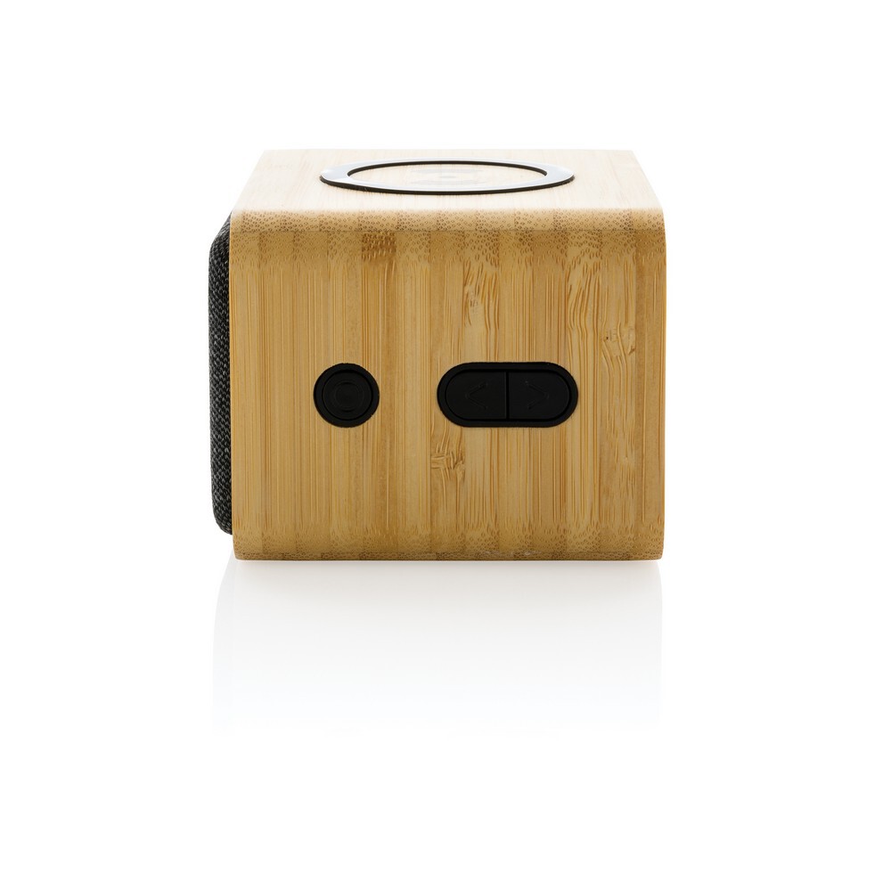 Głośnik bezprzewodowy 5W, BT 5.3, wykonany z naturalnego bambusa z certyfikatem FSC® oraz z ABS i PET z recyklingu z certyfikatem RCS, zawartość materiałów z recyklingu 51% obliczona na podstawie wagi całkowitej produktu, funkcja odbierania połączeń, wbudowany mikrofon, wbudowany akumulator o pojemności 1200 mAh umożliwia odtwarzanie muzyki do 6 godzin, kabel z TPE z recyklingu w komplecie, w kraftowym pudełku z certyfikatem FSC® mix, nie zawiera PVC