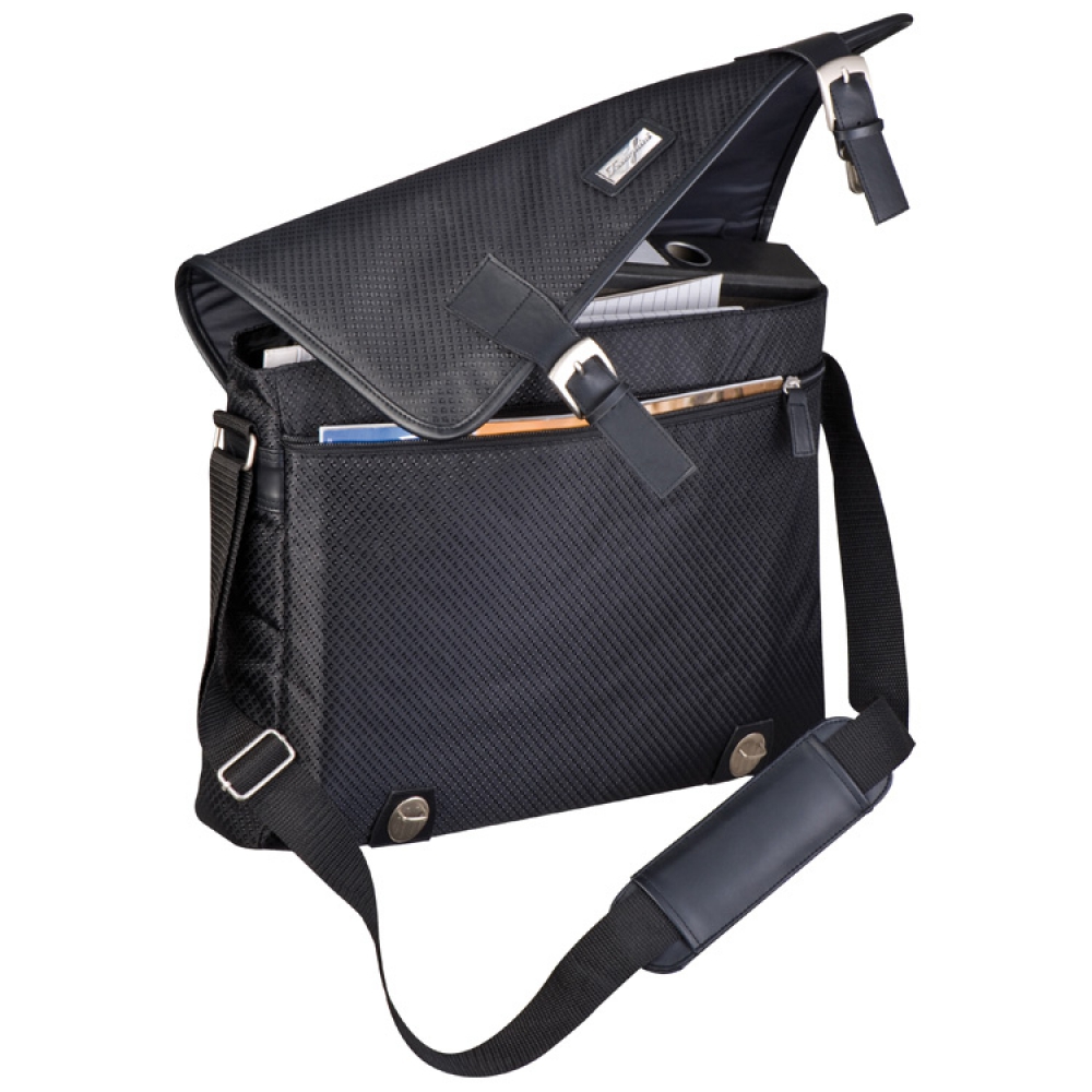 Torba na laptop marki Ferraghini, wykonana z eleganckiego poliestru Diamond Ripstop. Oprócz specjalnie wyściełanej komory na komputer, posiada liczne kieszenie na niezbędne przedmioty codziennego użytku. Regulowany pasek na ramię wyposażony został w antypoślizgową nakładkę, zwiększającą komfort noszenia.