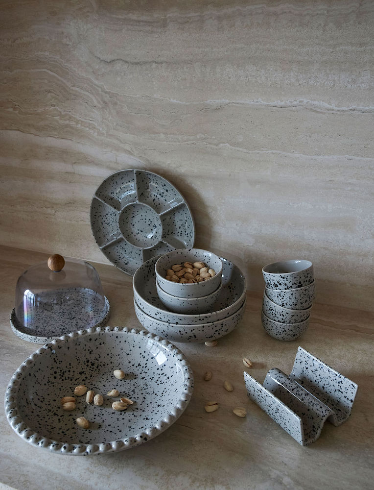 <p>W szwedzkich domach tacos i tapas są bardzo częstymi goścmi. My w Sagaform zwróciliśmy na to uwagę już 20 lat temu. Teraz kultowa zastawa powraca do asortymentu, ale w nowy, bardziej nowoczesny sposób. Seria Ditte z talerzami i miseczkami doskonale nadaje się do przekąsek, tacos lub tapas, gdy zastawiamy stół na wspólny, rodzinny posiłek lub spotkanie z przyjaciółmi. Poszczególne części serii mają naturalne tony w kolorach beżowym i szarym z czarnymi kropkami. Seria wykonana jest z kamionki.</p> <p> </p> <p>Art.nr: 5018331</p> <p>Projektant: Studio Sagaform</p> <p>Materiał: Kamionka</p> <p>Nie myć w zmywarce</p> <p>Kolor: Szary/Czarny/Transparentny/ brązowy</p> <p>Wymiary: ø19,5x13cm</p> <p>Opakowanie: Box</p>