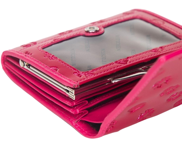 Damski portfel WITTCHEN z lakierowanej skóry z monogramem mały / Różowy