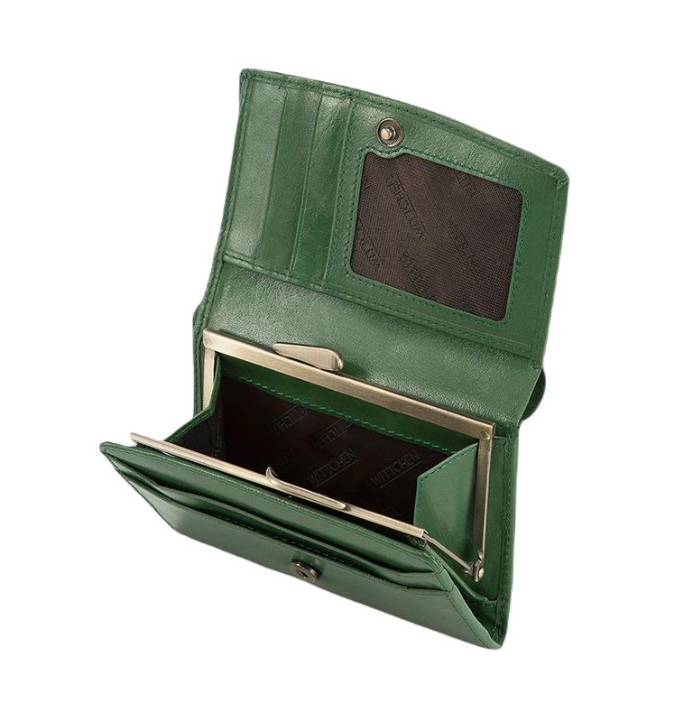 Damski portfel WITTCHEN z gładkiej skóry na zatrzask średni / Zielony