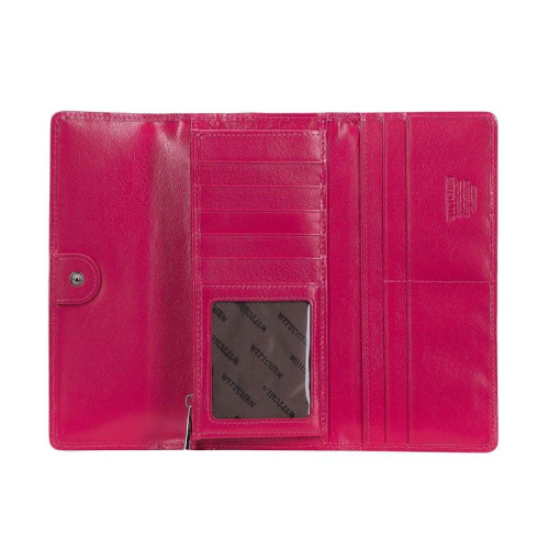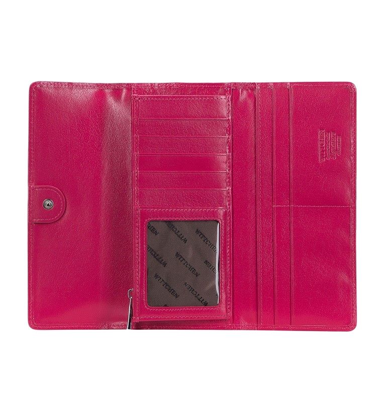Ten damski portfel będzie idealny dla kobiet lubiących praktyczne i stylowe dodatki. Został wykonany z lakierowanej skóry, tłoczonej w monogram WITTCHEN. Wnętrze wykończono skórą naturalną. Portfel jest znakomicie zorganizowany, w środku ma wiele miejsc na karty, dwie kieszenie na banknoty, przezroczystą przegródkę na przykład na zdjęcie i zapinaną na suwak kieszonkę na bilon. Damski portfel z lakierowanej skóry z monogramem to świetny pomysł na prezent dla każdej eleganckiej kobiety.
