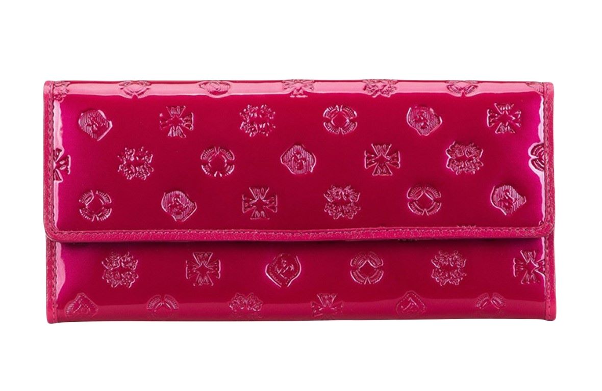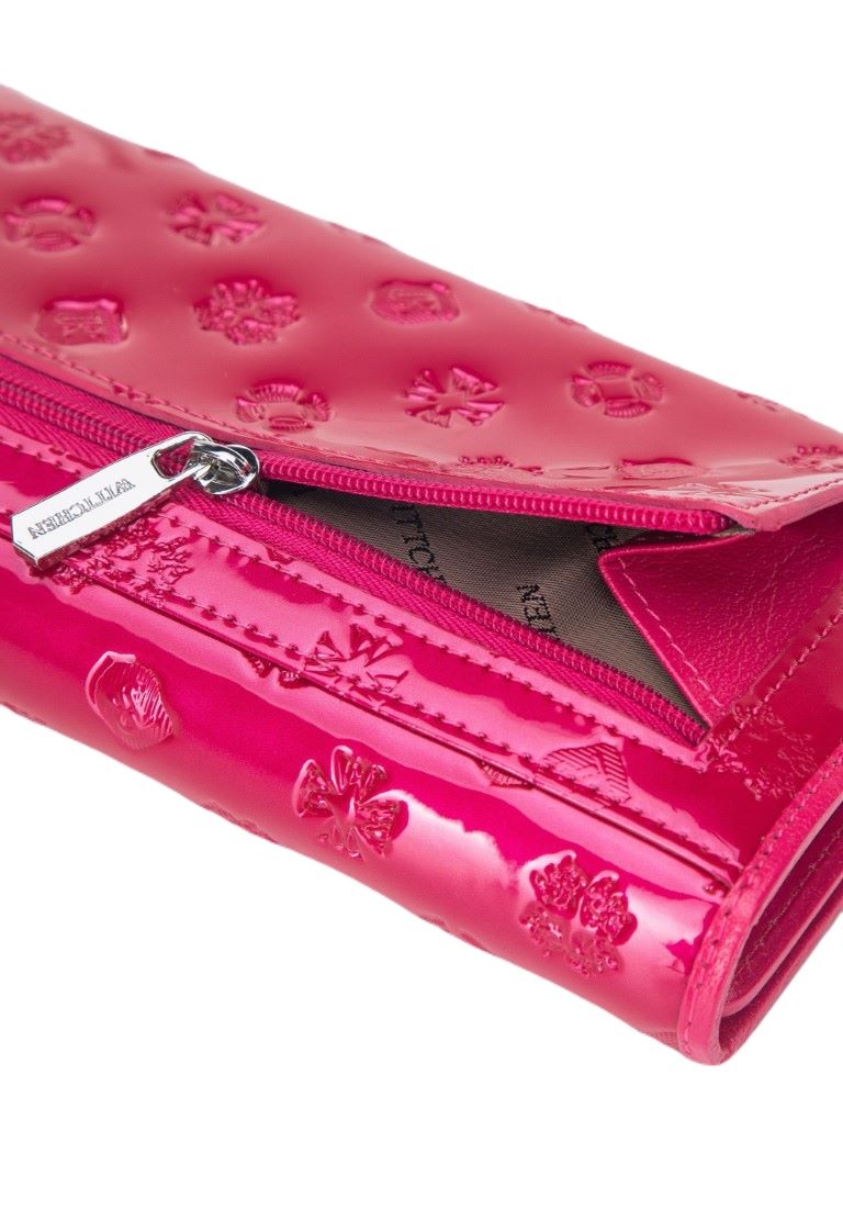 Damski portfel WITTCHEN z lakierowanej skóry z monogramem / Różowy