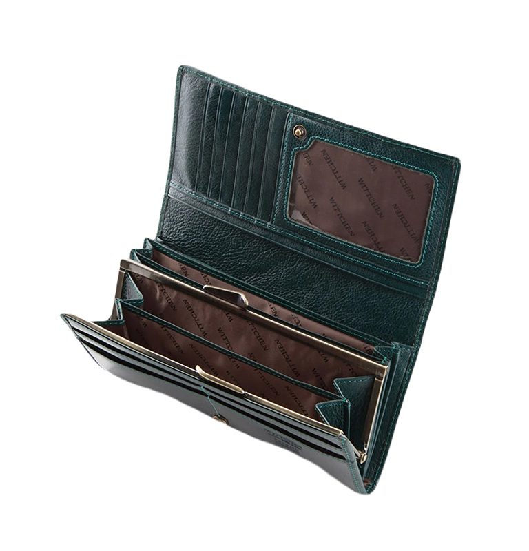 Damski portfel WITTCHEN ze skóry lakierowany poziomy / Zielony