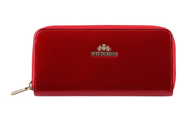 Damski portfel WITTCHEN ze skóry lakierowany na suwak / Czerwony