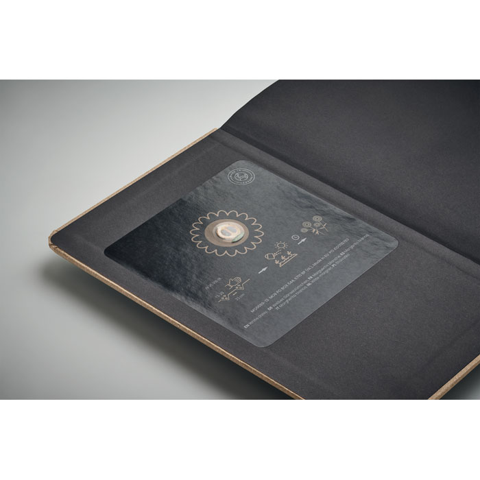 Zeszyt A5 w twardej okładce. 184 strony (92 kartki) w linie, wykonany z papieru z recyklingu. Bawełniany znacznik stron. Zawiera nasiona do siewu. Wyprodukowano w UE.
