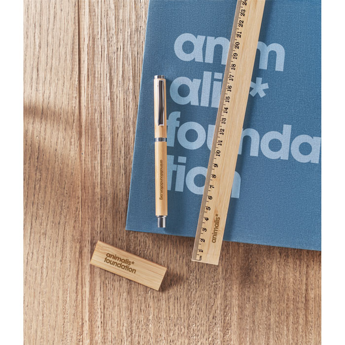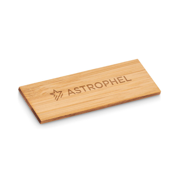Bambusowy uchwyt na identyfikator z igłowym zapięciem z tyłu.