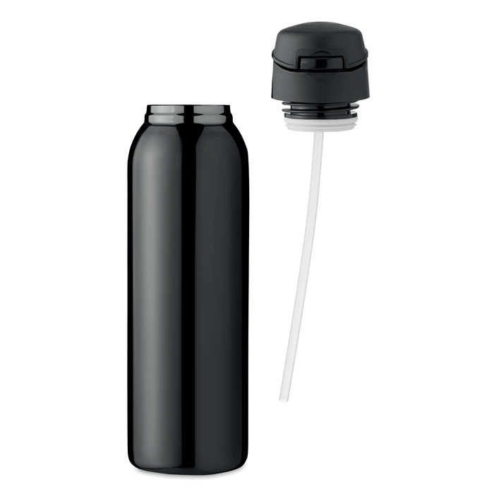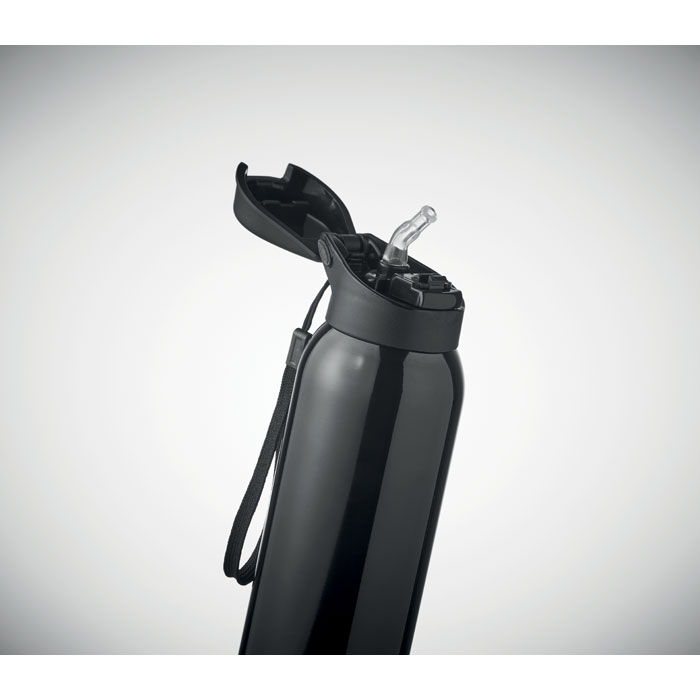 Dwuścienna butelka ze stali nierdzewnej, izolowana próżniowo, ze zintegrowaną słomką lub ustnikiem i z zakrętką z zawieszką. Pojemność 580 ml.