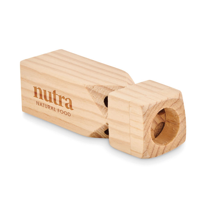 Drewniany gwizdek z wyraźnym dźwiękiem imitującym trąbienie pociągu. Lekka i mocna konstrukcja.