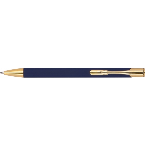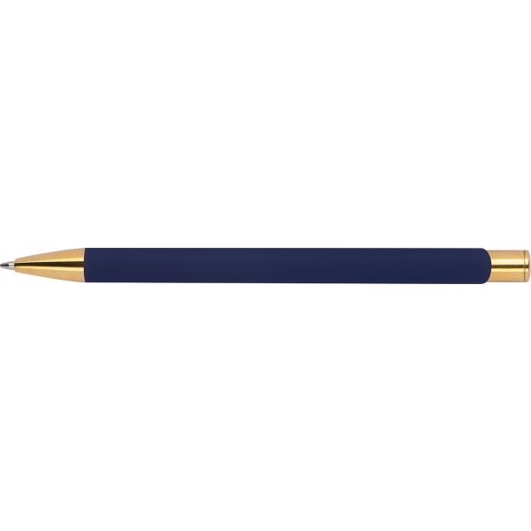 Długopis Glendale został wykonany z metalu, co gwarantuje jego trwałość i odporność na uszkodzenia. Jego powierzchnia została pokryta warstwą soft touch, która nadaje mu elegancki wygląd i przyjemną w dotyku fakturę. Delikatne wykończenia i gładkie linie długopisu sprawiają, że jego użytkowanie jest prawdziwą przyjemnością. Nie przerywa i nie pozostawia smug.