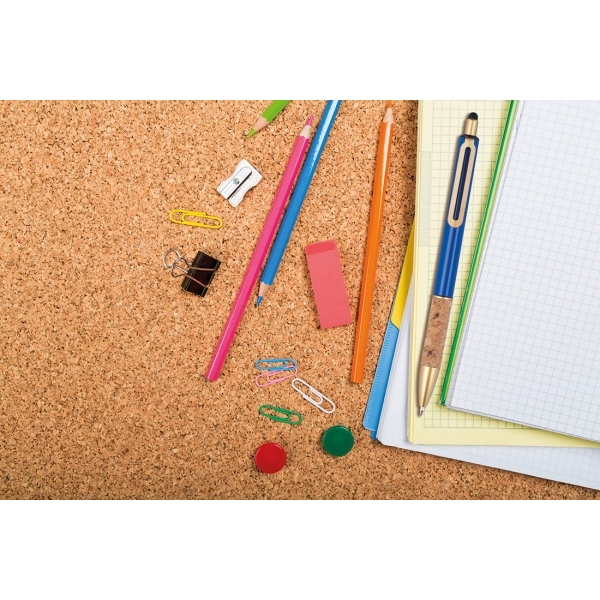 Metalowy długopis z złotymi elementami i korkową strefą uchwytu to elegancka propozycja, która łączy nowoczesny design z naturalnymi akcentami. Wyposażony w gumkę do obsługi ekranów dotykowych oraz wkład piszący na niebiesko, zapewnia wygodę i płynność pisania, a także umożliwia wygodne korzystanie z urządzeń mobilnych.Idealny do biura, na prezent czy do codziennych notatek, ten długopis łączy estetykę, funkcjonalność i komfort, stając się niezawodnym narzędziem w każdej sytuacji.