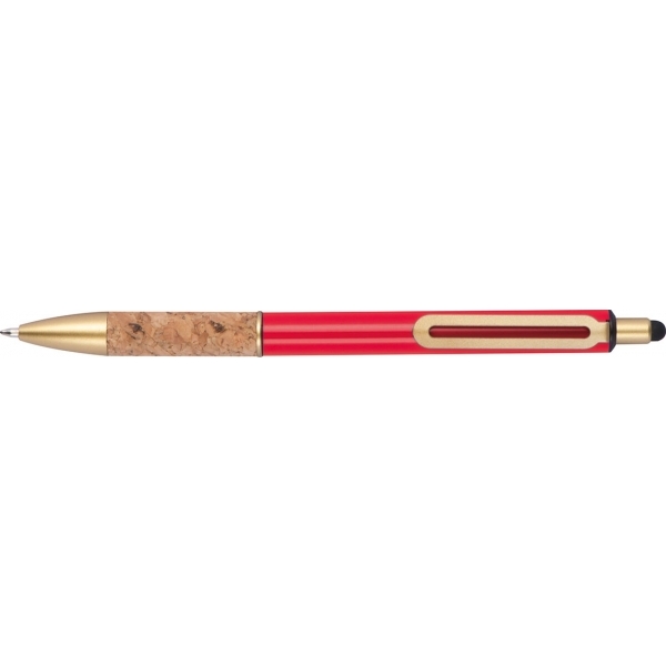 Metalowy długopis z złotymi elementami i korkową strefą uchwytu to elegancka propozycja, która łączy nowoczesny design z naturalnymi akcentami. Wyposażony w gumkę do obsługi ekranów dotykowych oraz wkład piszący na niebiesko, zapewnia wygodę i płynność pisania, a także umożliwia wygodne korzystanie z urządzeń mobilnych.Idealny do biura, na prezent czy do codziennych notatek, ten długopis łączy estetykę, funkcjonalność i komfort, stając się niezawodnym narzędziem w każdej sytuacji.