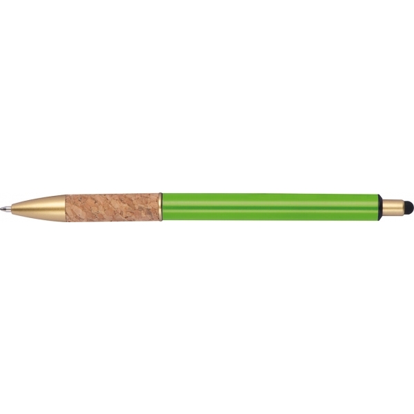 Metalowy długopis z złotymi elementami i korkową strefą uchwytu to elegancka propozycja, która łączy nowoczesny design z naturalnymi akcentami. Wyposażony w gumkę do obsługi ekranów dotykowych oraz wkład piszący na niebiesko, zapewnia wygodę i płynność pisania, a także umożliwia wygodne korzystanie z urządzeń mobilnych.Idealny do biura, na prezent czy do codziennych notatek, ten długopis łączy estetykę, funkcjonalność i komfort, stając się niezawodnym narzędziem w każdej sytuacji.