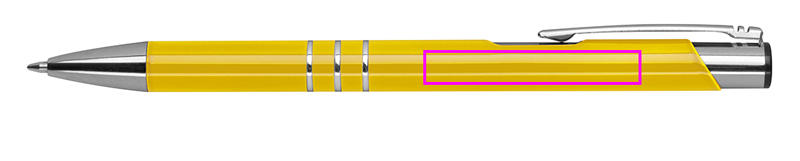 Klasyczny metalowy długopis, popularny wybór jako gadżet reklamowy na rozdanie lub gadżet z logo promujący markę. Wykonany z aluminium, charakteryzuje się srebrnym wykończeniem smukłego klipsu oraz trzema ringami, które elegancko dekorują jego korpus. Długopis sprawdzi się zarówno w biurze, jak i podczas spotkań biznesowych. Mechanizm na `klik` zapewnia szybkie i łatwe wysuwanie wkładu, co czyni go wygodnym i praktycznym narzędziem do codziennego użytku. Wyposażony w duży, niebieski wkład, długopis gwarantuje długotrwałe pisanie bez potrzeby częstego wymieniania wkładu. Ten długopis to doskonały wybór dla osób, które cenią sobie sprawdzone gadżety w atrakcyjnej cenie.