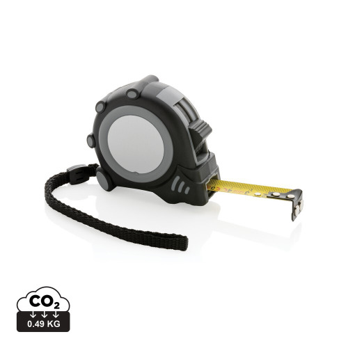 Miara 3 m, taśma o szerokości 16 mm z haczykiem i magnesami, przycisk blokady, wykonana z ABS pochodzącego z recyklingu z certyfikatem RCS (Recycled Claim Standard) który gwarantuje, że wykorzystane materiały pochodzą z recyklingu, całkowita zawartość materiału z recyklingu obliczona w oparciu o wagę całkowitą przedmiotu: 15%, uchwyt z TPR, w pudełku z papieru kraftowego z certyfikatem FSC® mix (Forest Stewardship Council)