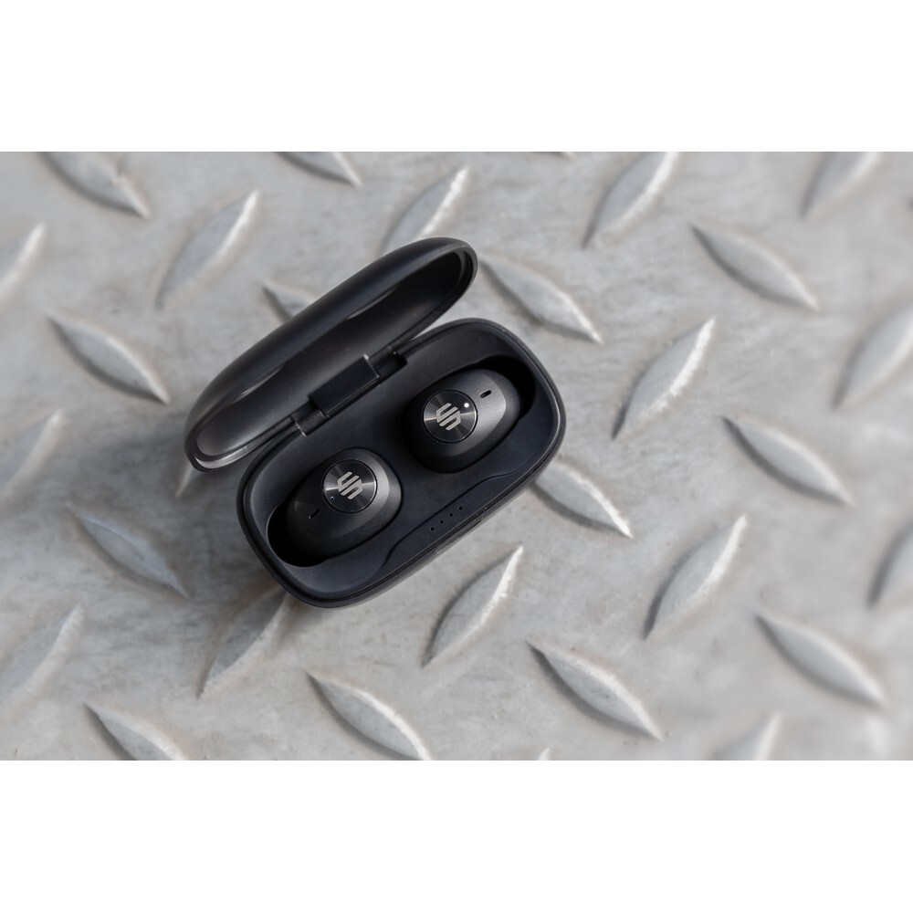 Bezprzewodowe słuchawki douszne, wykonane z ABS z recyklingu z certyfikatem RCS, całkowita zawartość materiałów z recyklingu obliczone na podstawie wagi całkowitej przedmiotu: 55%, funkcja redukcji szumów otoczenia podczas rozmów (ENC), wbudowane 2 mikrofony, funkcja odbierania połączeń, wodoodporne IPX4, dotykowy panel sterowania, do 6 godzin odtwarzania na jednym ładowaniu, etui ładujące zapewnia 20 godzin odtwarzania, nie zawiera PVC, opakowanie o zmniejszonej zawartości plastiku