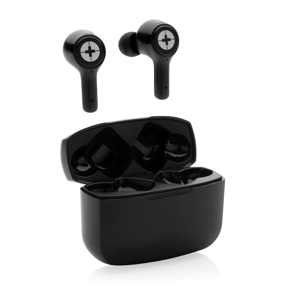 Bezprzewodowe słuchawki douszne TWS (True Wireless Stereo) z ANC (Active Noise Reduction), BT 5.3, wykonane z ABS, funkcja odbierania połączeń, muzyka oraz rozmowy telefoniczne stereo, zawartość materiałów z recyklingu obliczona na podstawie wagi całkowitej przedmiotu: 59%, etui 400 mAh pełniące funkcję stacji ładującej w komplecie, akumulator słuchawek 40 mAh umożliwia odtwarzanie muzyki do 3.5 godzin z ANC lub 4.5 godziny bez ANC, ponowne naładowanie za pomocą etui w 1.5 godziny, zasięg do 10 metrów, stopień ANC: 27DB, w pudełku z certyfikatem FSC® mix, kabel USB typu C wykonany z TPE oraz 3 dodatkowe nasadki w różnych rozmiarach w komplecie, nie zawiera PVC