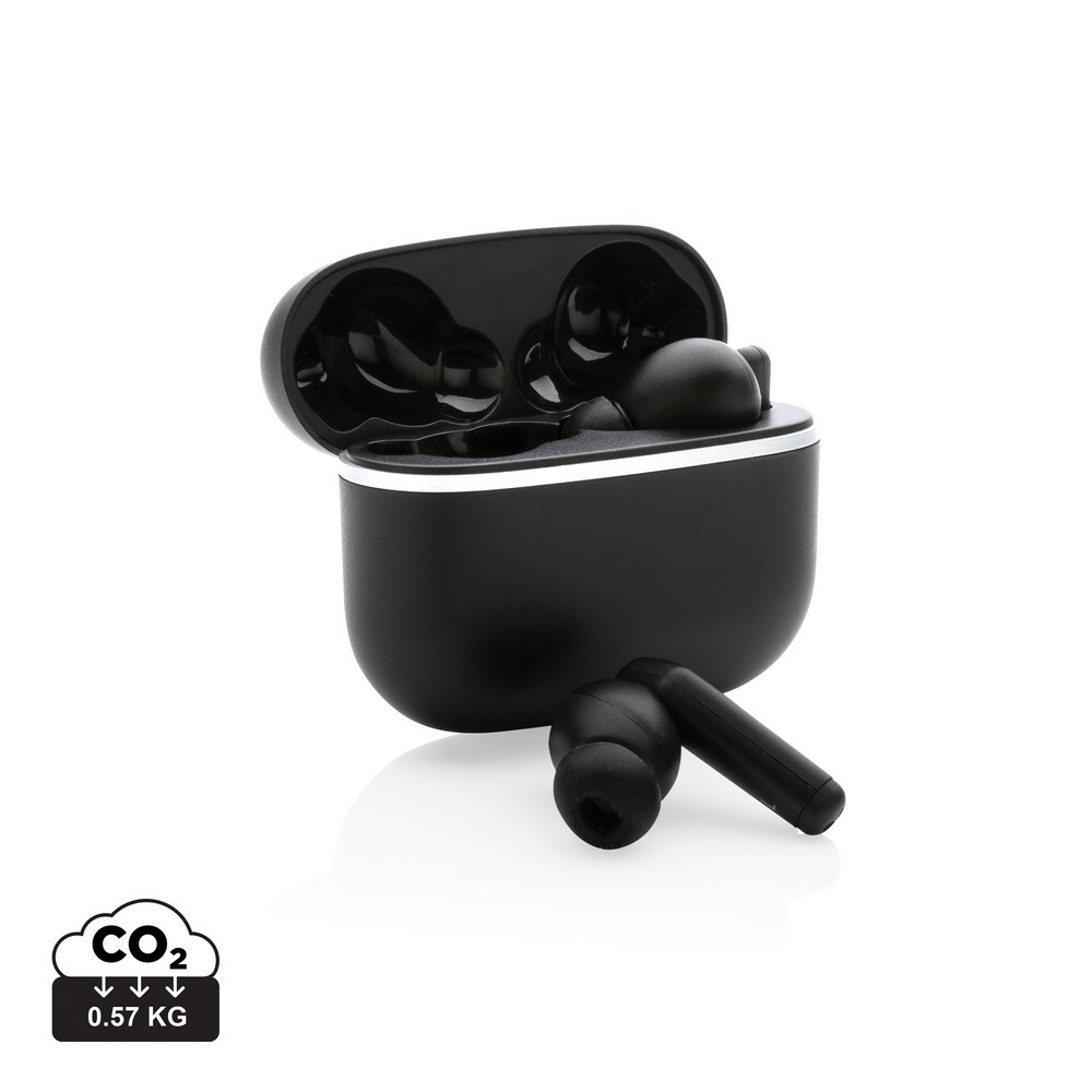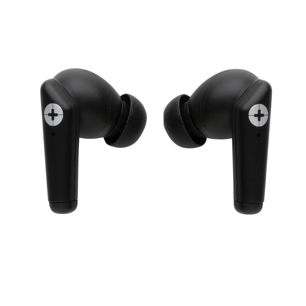 Bezprzewodowe słuchawki douszne TWS 2.0 (True Wireless Stereo), BT 5.3, wykonane z ABS, zawartość materiałów z recyklingu obliczona na podstawie wagi całkowitej przedmiotu: 59%, etui 400 mAh pełniące funkcję stacji ładującej w komplecie, akumulator słuchawek 40 mAh umożliwia odtwarzanie muzyki do 4 godzin, ponowne naładowanie za pomocą etui w 1.5 godziny, zasięg do 10 metrów, w pudełku z certyfikatem FSC® mix, kabel wykonany z TPE bez dodatku PVC w komplecie