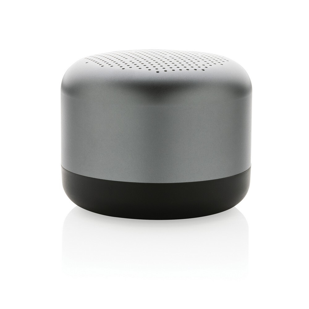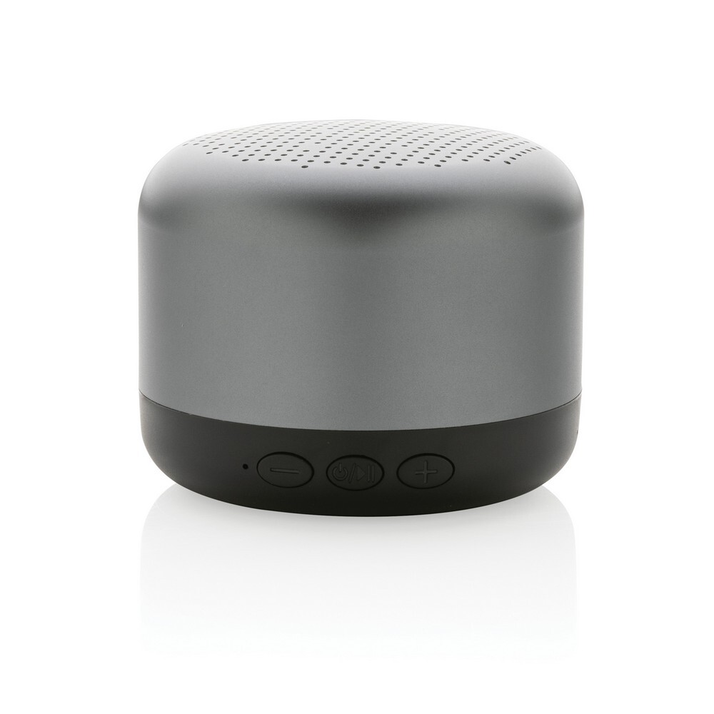 Głośnik bezprzewodowy 5W, BT 5.0, wykonany z ABS i aluminium pochodzącego z recyklingu, całkowita zawartość materiałów z recyklingu obliczona na podstawie wagi całkowitej przedmiotu: 35%, akumulator o pojemności 600 mAh umożliwia odtwarzanie muzyki do 4 godzin, ponowne naładowanie w ciągu 2 godzin, zasięg do 10m, w pudełku kraftowym z certyfikatem FSC® mix, kabel wykonany z aluminium, TPE i PET z recyklingu w komplecie