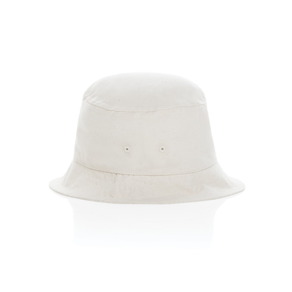 Płócienny kapelusz typu bucket, 285g/m2, niebarwiony, wykonany w 30% z poliestru i 70% z bawełny pochodzących z recyklingu, dzięki wykorzystaniu materiałów z recyklingu każdy kapelusz pozwala na zaoszczędzenie nawet do 697 l wody, dzięki zastosowaniu technologii AWARE™ wykorzystane materiały są identyfikowalne z pochodzenia, 2% wpływów z każdego sprzedanego produktu z kolekcji Impact jest przekazywane na rzecz Water.org