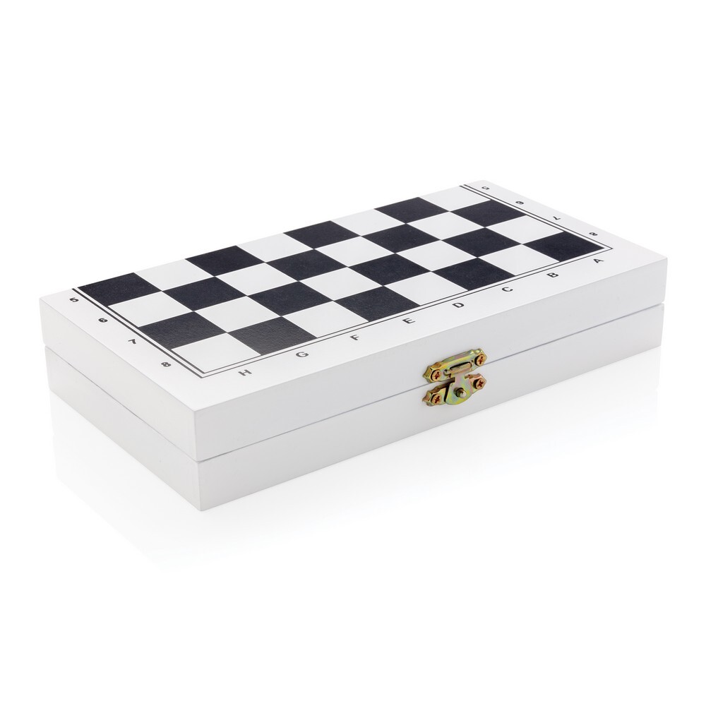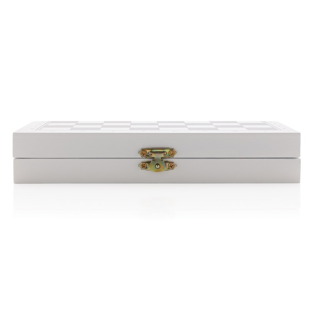 Zestaw gier 3 w 1, w komplecie: szachy, warcaby, tryktrak, wykonane z drewna z certyfikatem FSC®, w pudełku upominkowym z papieru kraftowego certyfikatem FSC®