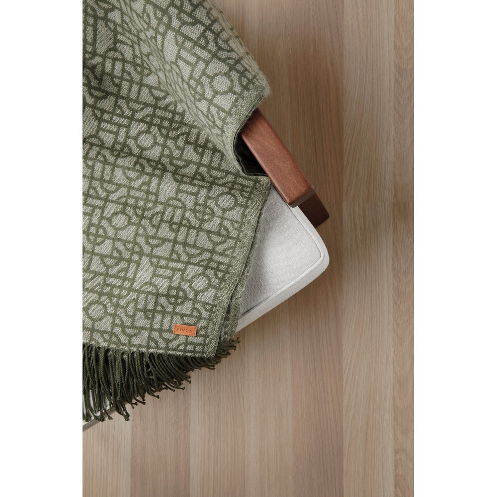 Koc z geometrycznym wzorem, wykonany z materiałów syntetycznych, spełnia standardy normy OEKO-TEX Standard 100