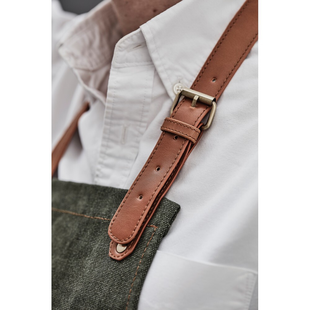 Fartuch kuchenny, wykonany z płótna, detale ze skóry wegańskiej