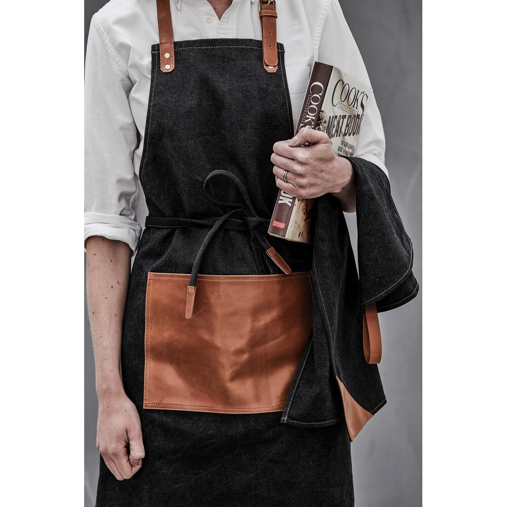 Fartuch kuchenny, wykonany z płótna, detale ze skóry wegańskiej