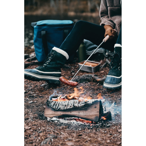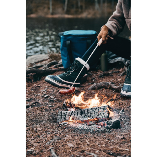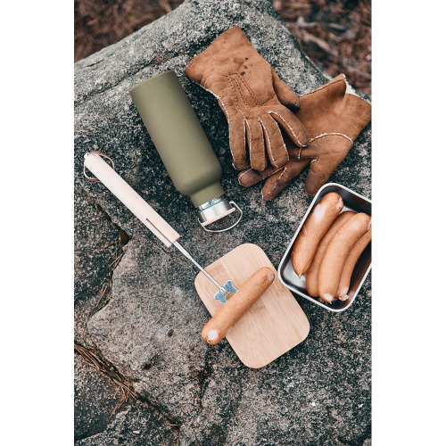 Teleskopowy kij do grilla, ogniska, wykonany ze stali nierdzewnej, drewniany uchwyt, długość po rozłożeniu: 70 cm