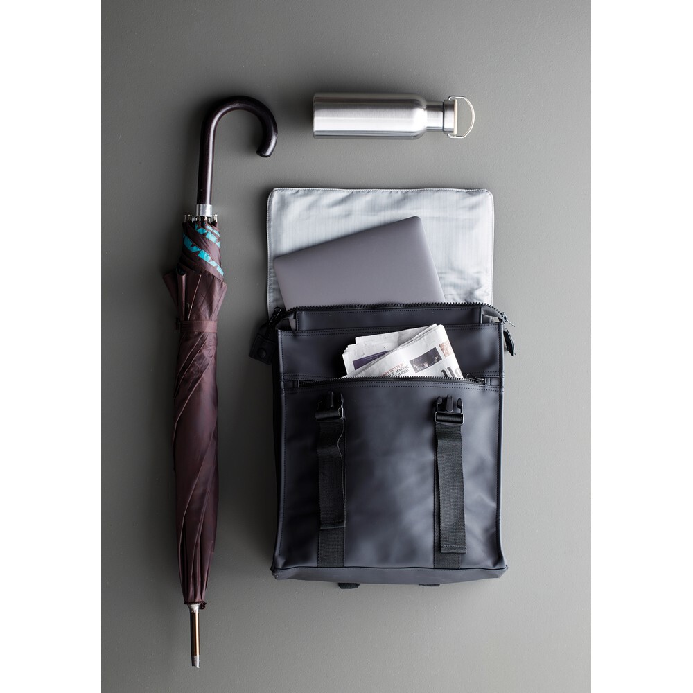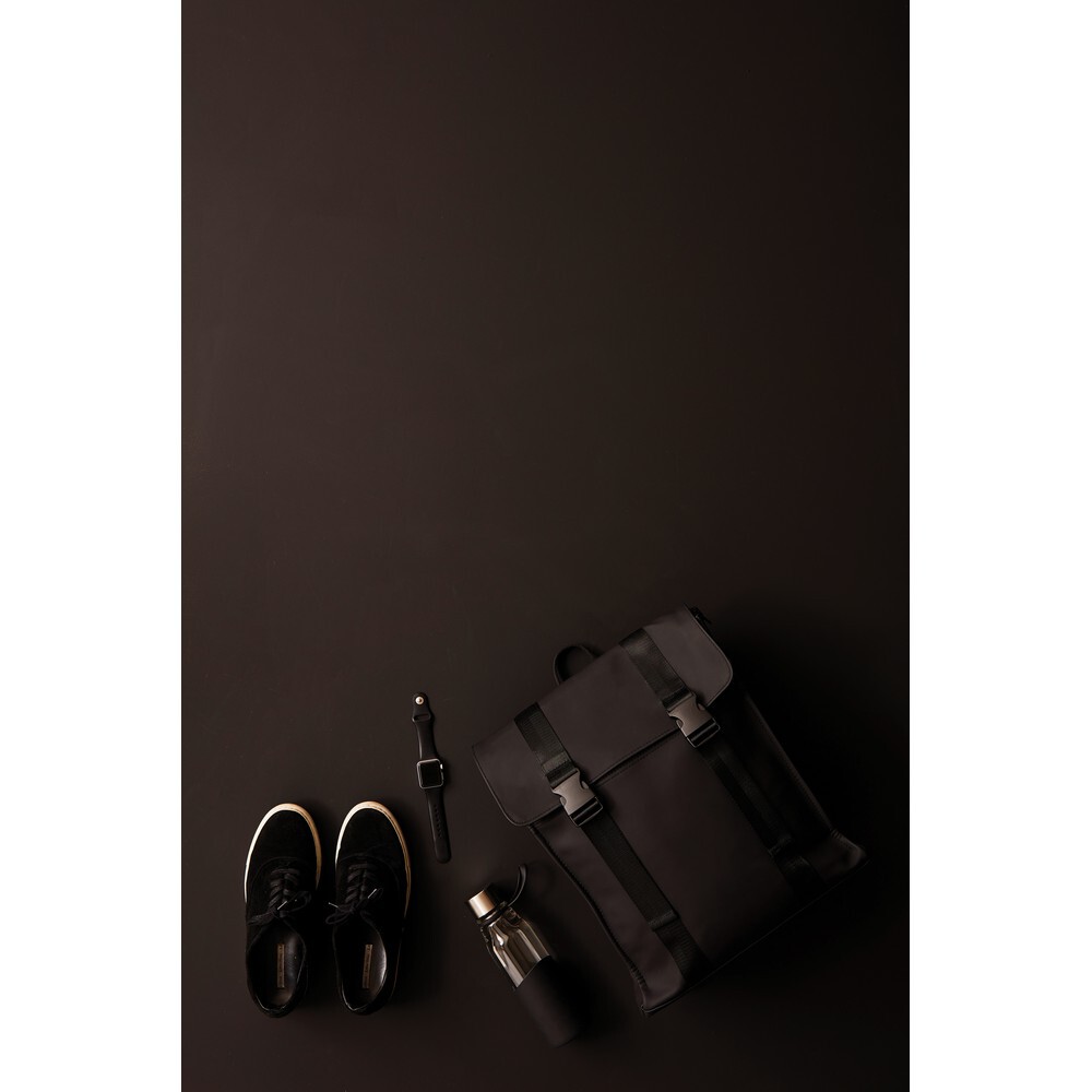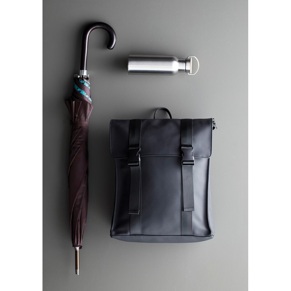 Plecak, wykonany z wodoodpornej skóry wegańskiej, kieszeń na zamek z boku, ukryta kieszeń z tyłu, regulowane paski na ramiona