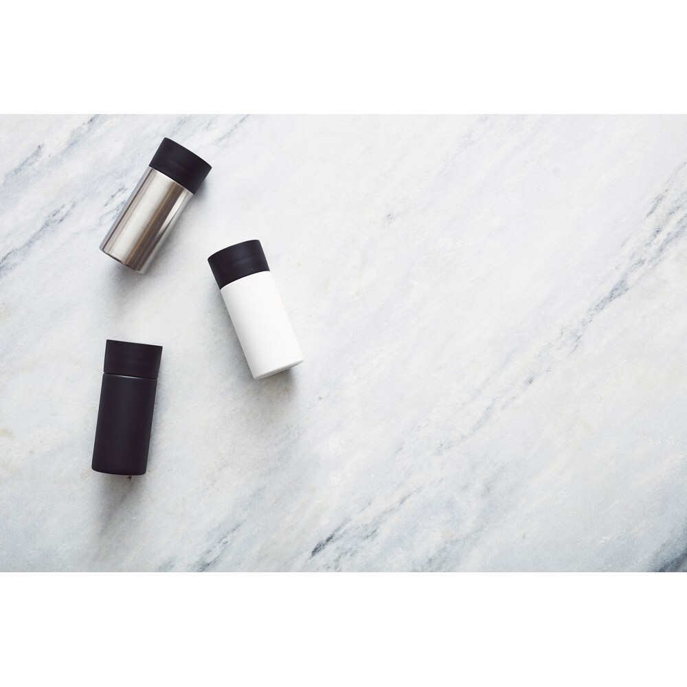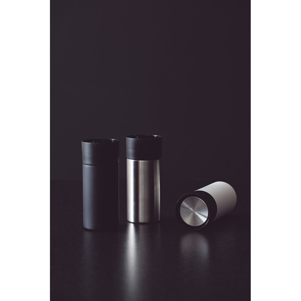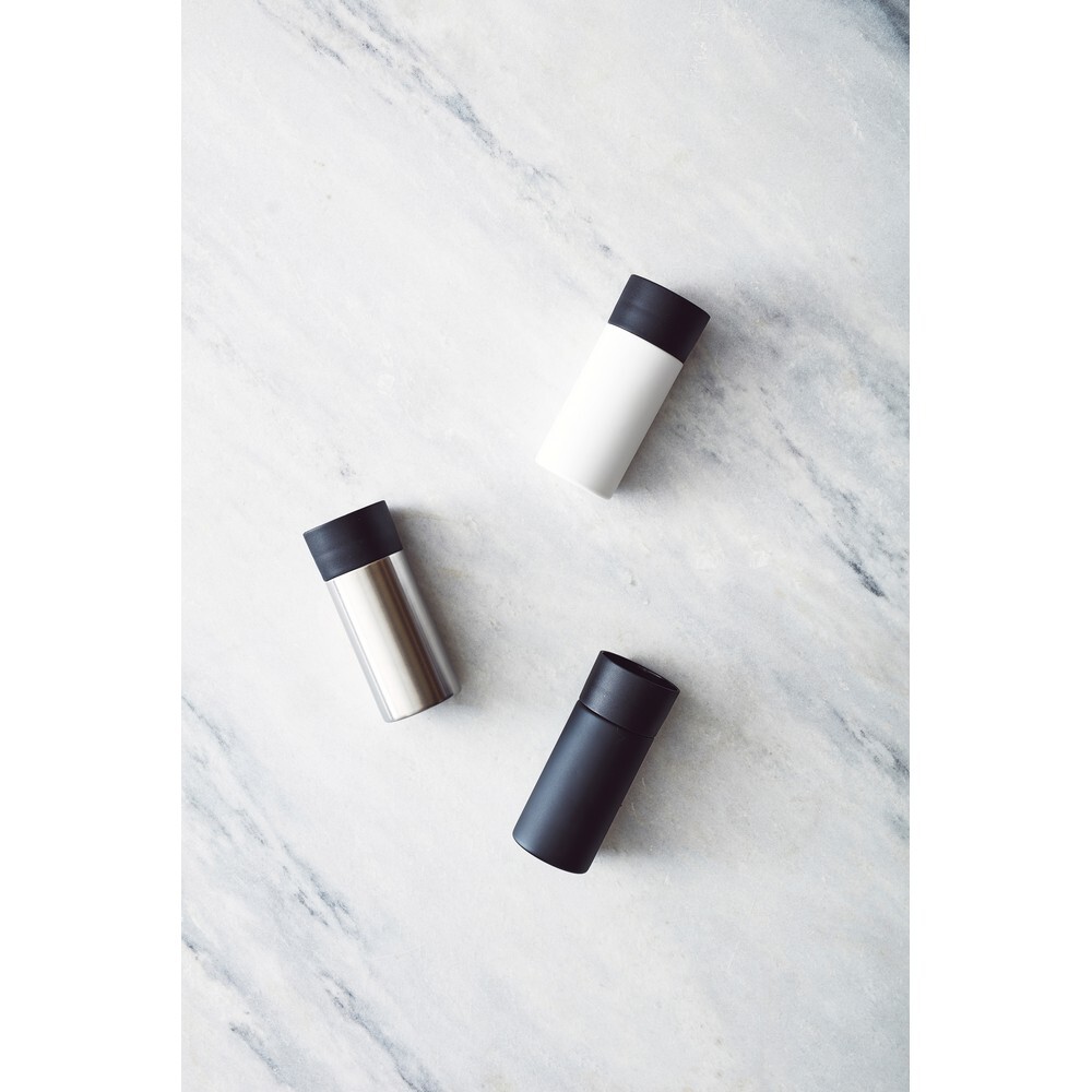 Kubek podróżny 300ml, wykonany ze stali nierdzewnej, obsługa jedną ręką, można myć w zmywarce