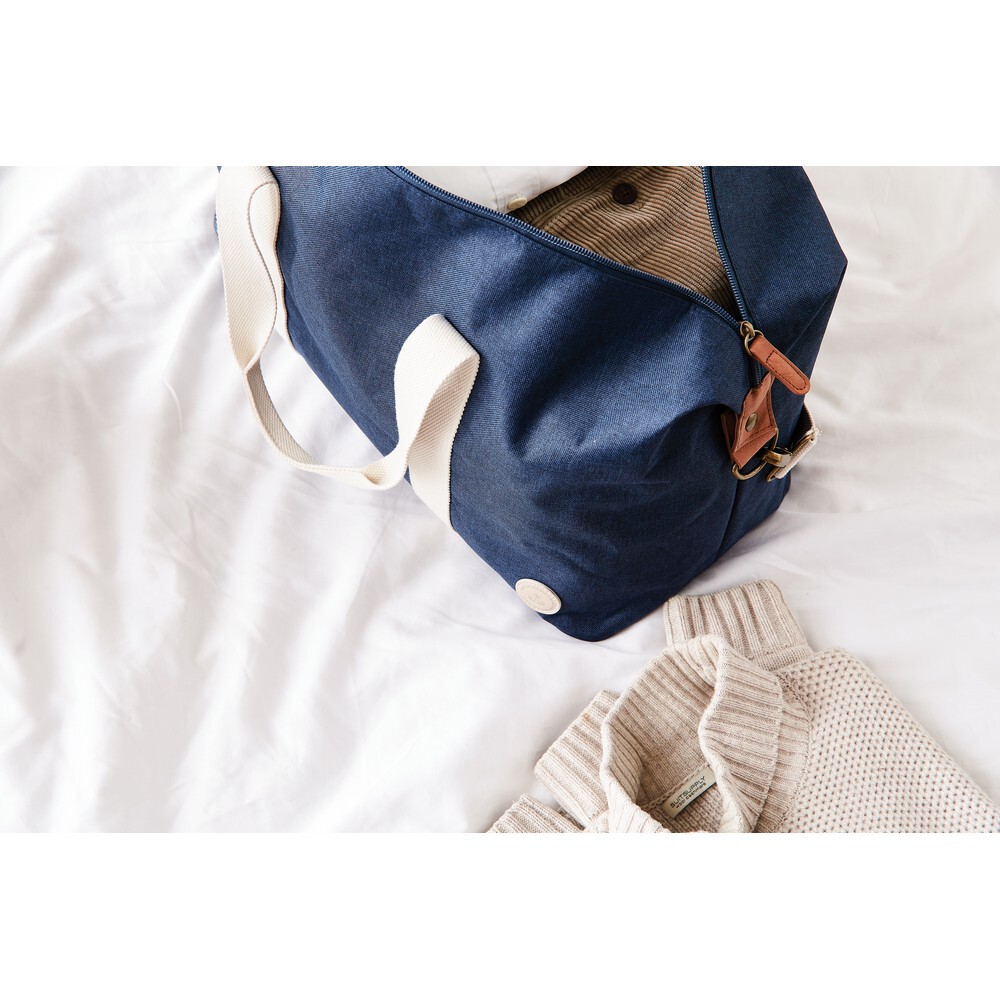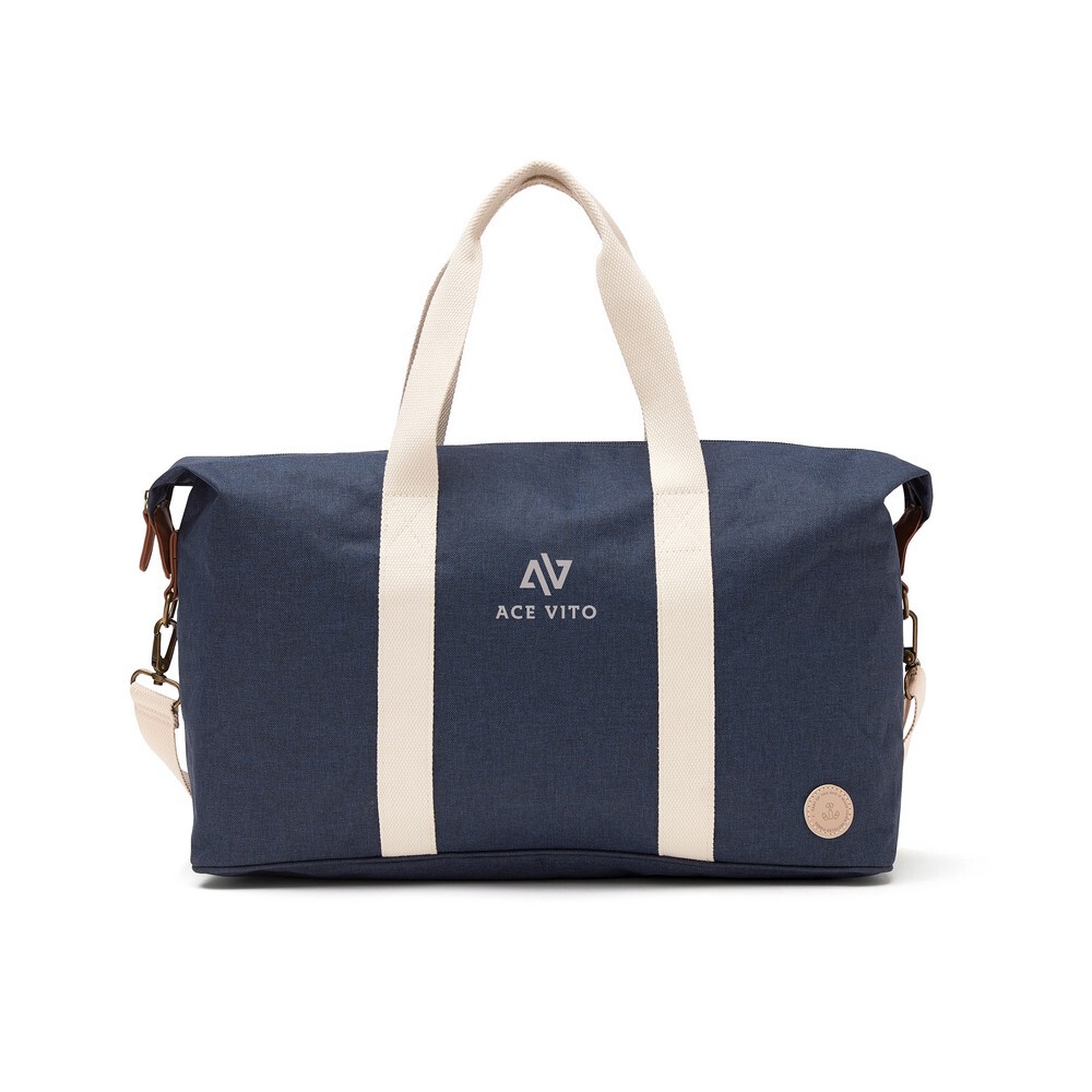 Torba sportowa, podróżna, przestronna przegroda główna, wykonana w 50% z RPET, detale ze skóry wegańskiej, regulowany pasek na ramię
