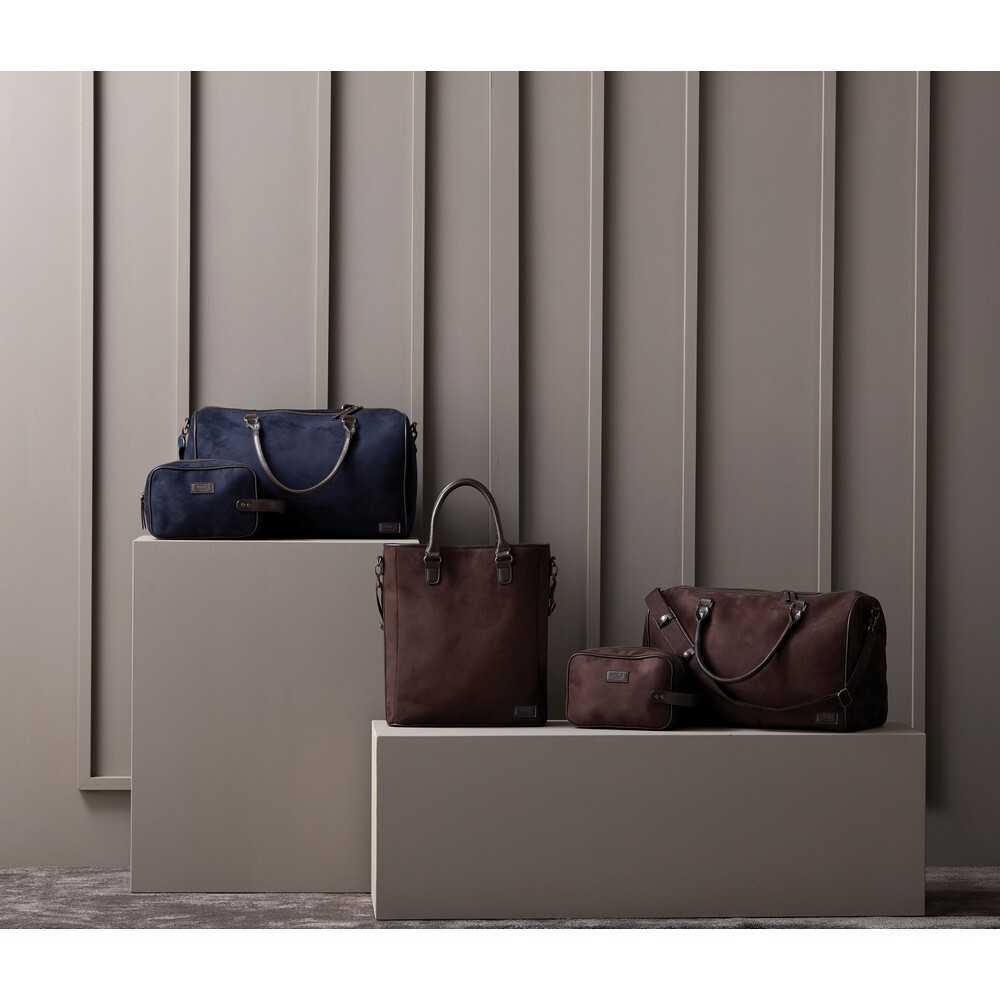 Kosmetyczka, wykonana z imitacji zamszu, detale ze skóry z PU oraz mosiądzu