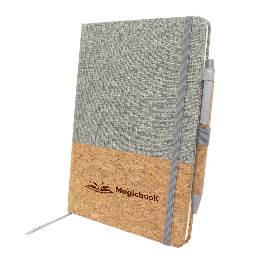 Korkowy notatnik A5 z długopisem | Layla / Szary