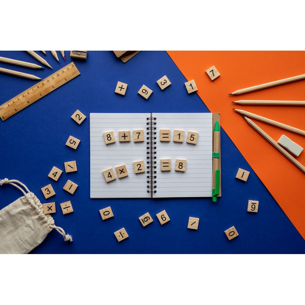 Gra edukacyjna B'RIGHT, 34 drewniane elementy, w komplecie bawełniany woreczek ze sznurkiem