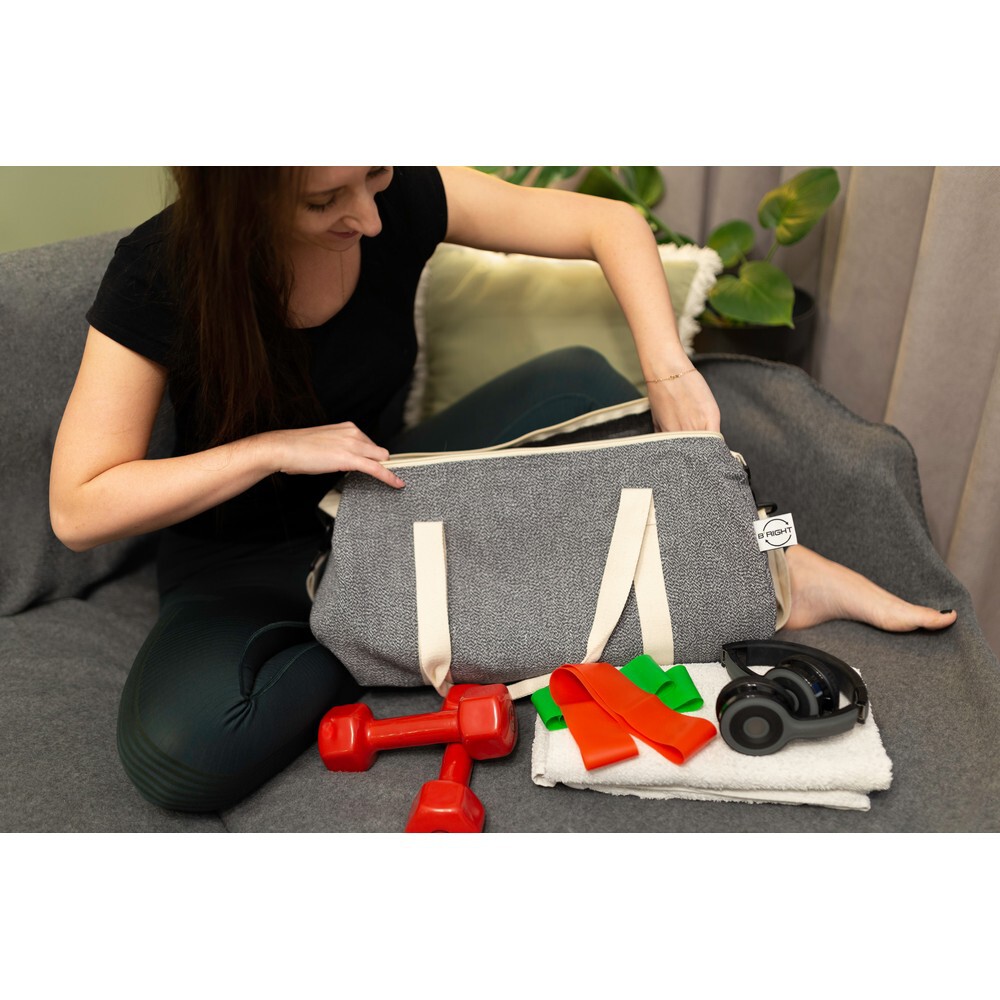 Torba sportowa, podróżna B'RIGHT, wykonana z bawełny z recyklingu i poliestru z recyklingu, duża przegroda główna na zamek błyskawiczny, uchwyty i regulowany pasek na ramię