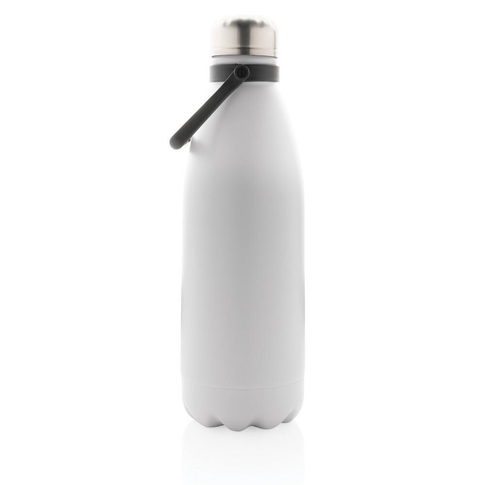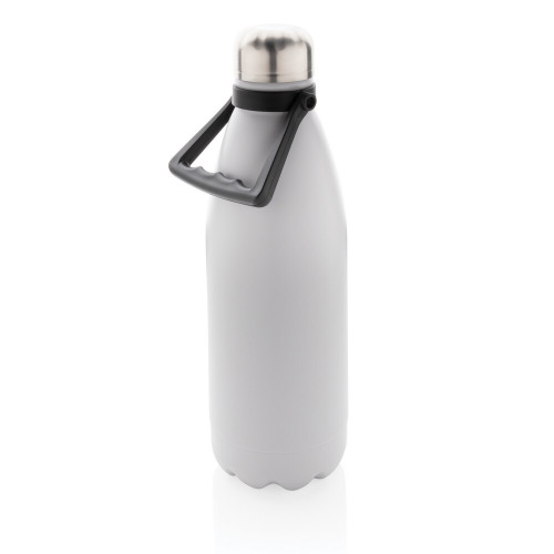 Próżniowa butelka sportowa 1,5 l z uchwytem, proszkowa powłoka, wykonana ze stali nierdzewnej pochodzącej z recyklingu, całkowita zawartość materiałów z recyklingu obliczona na podstawie wagi całkowitej przedmiotu: 88%, podwójne ścianki z próżnią pomiędzy, utrzymuje temperaturę napojów ciepłych do 5 godzin oraz zimnych do 15 godzin, w opakowaniu z certyfikatem FSC®