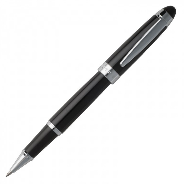 Pióro kulkowe w kolorze czarno-srebrnym. Czarny błyszczący korpus w połączeniu z chromowanymi akcentami prezentuje się wyjątkowo elegancko. Dzięki wygodnej nasadce pióro można łatwo otwierać i zamykać. Model ten dostępny jest jako: pióro wieczne, długopis i pióro kulkowe.