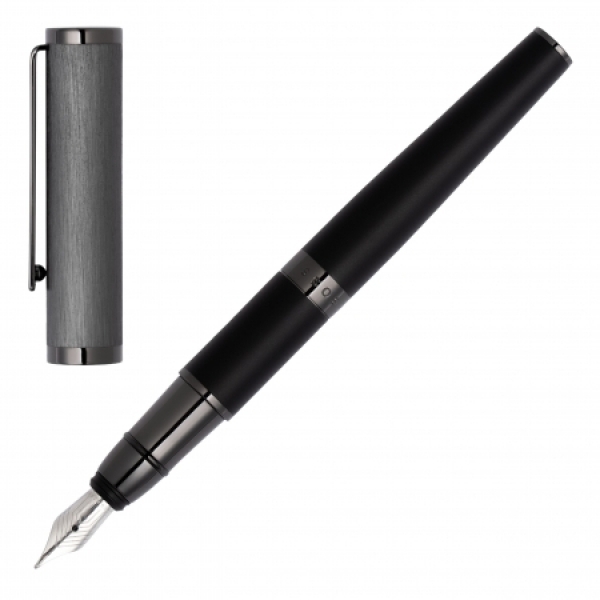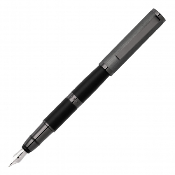 Pióro wieczne Formation Gleam jest nowoczesne i w męskim stylu. Gra na kontraście między głęboką ciemnoszarą szczotkowaną nasadką, miękkim matowym czarnym korpusem i subtelnymi lśniącymi ciemnobrązowymi akcentami.