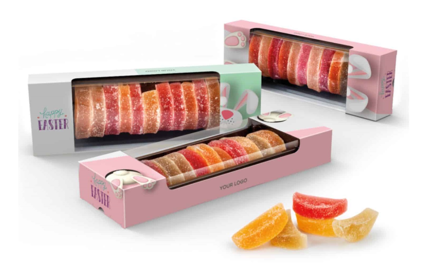 Ręcznie robione galaretki owocowe w cukrze (łącznie 110 g).