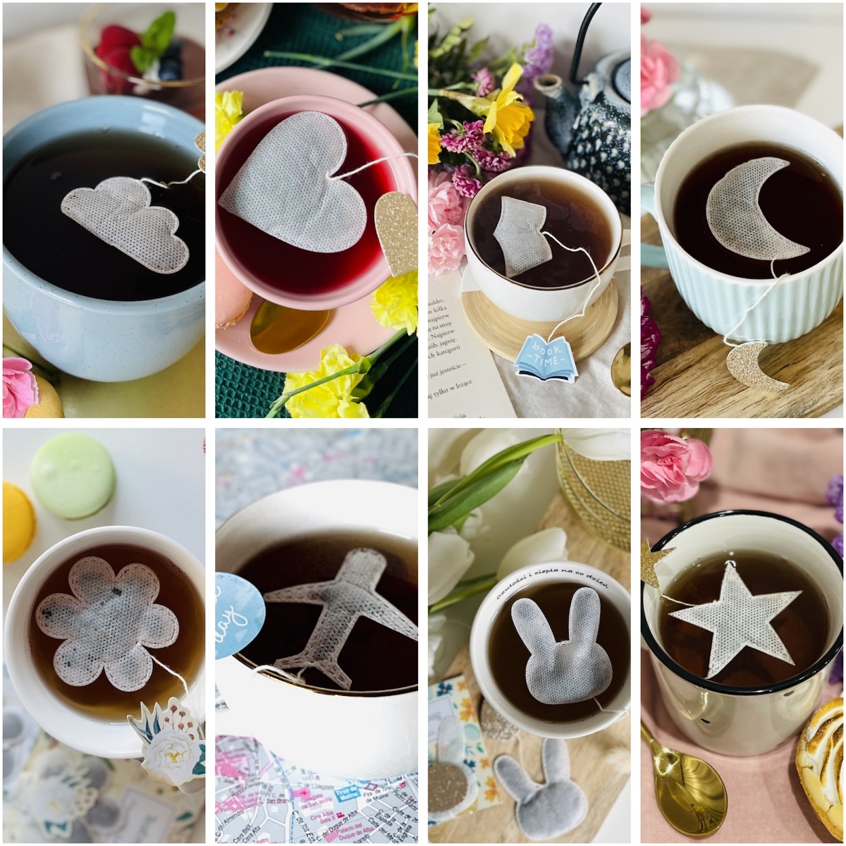 Kształty torebek do wyboru: zajączek, kwiatek, serce, książka, samolot, chmurka, księżyc, gwiazdka, choinka. O wyborze poinformuj przy skłądaniu zamówienia.