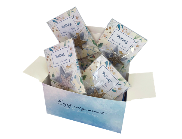• Zestaw 10 herbat zapakowany jest w personalizowane pudełko  (zgodnie z projektem klienta).